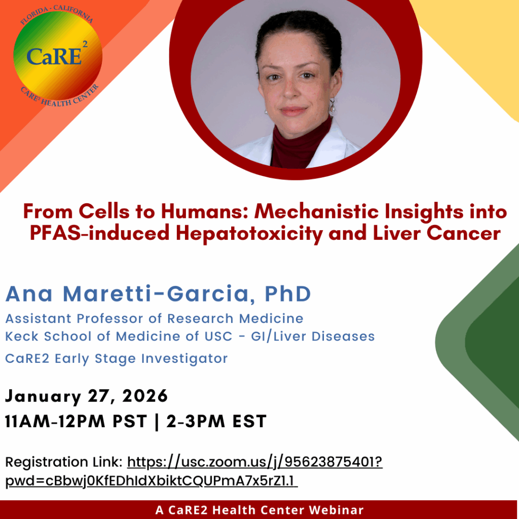 Please join us on January 27, for our CaRE2 Monthly Webinar at 11AM PST/2PM EST via Zoom featuring one of our Early Stage Investigators, Dr. Maretti-Garcia👩🔬 Link to join: https://usc.zoom.us/j/95623875401?pwd=cBbwj0KfEDhIdXbiktCQUPmA7x5rZ1.1 #CancerResearch #CaRE2Webinar