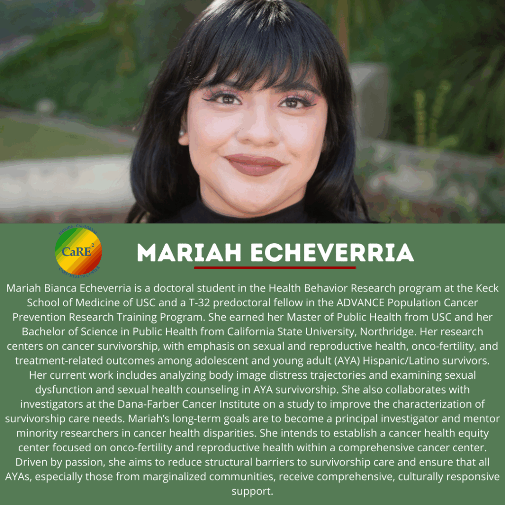 Join us in celebrating our new CaRE2 Graduate Student, Mariah Echeverria🦠🔬 Check out our training programs on our website: https://care2healthcenter.org/grad-care2/ #CancerResearch #CaRE2 #TrainingTuesday